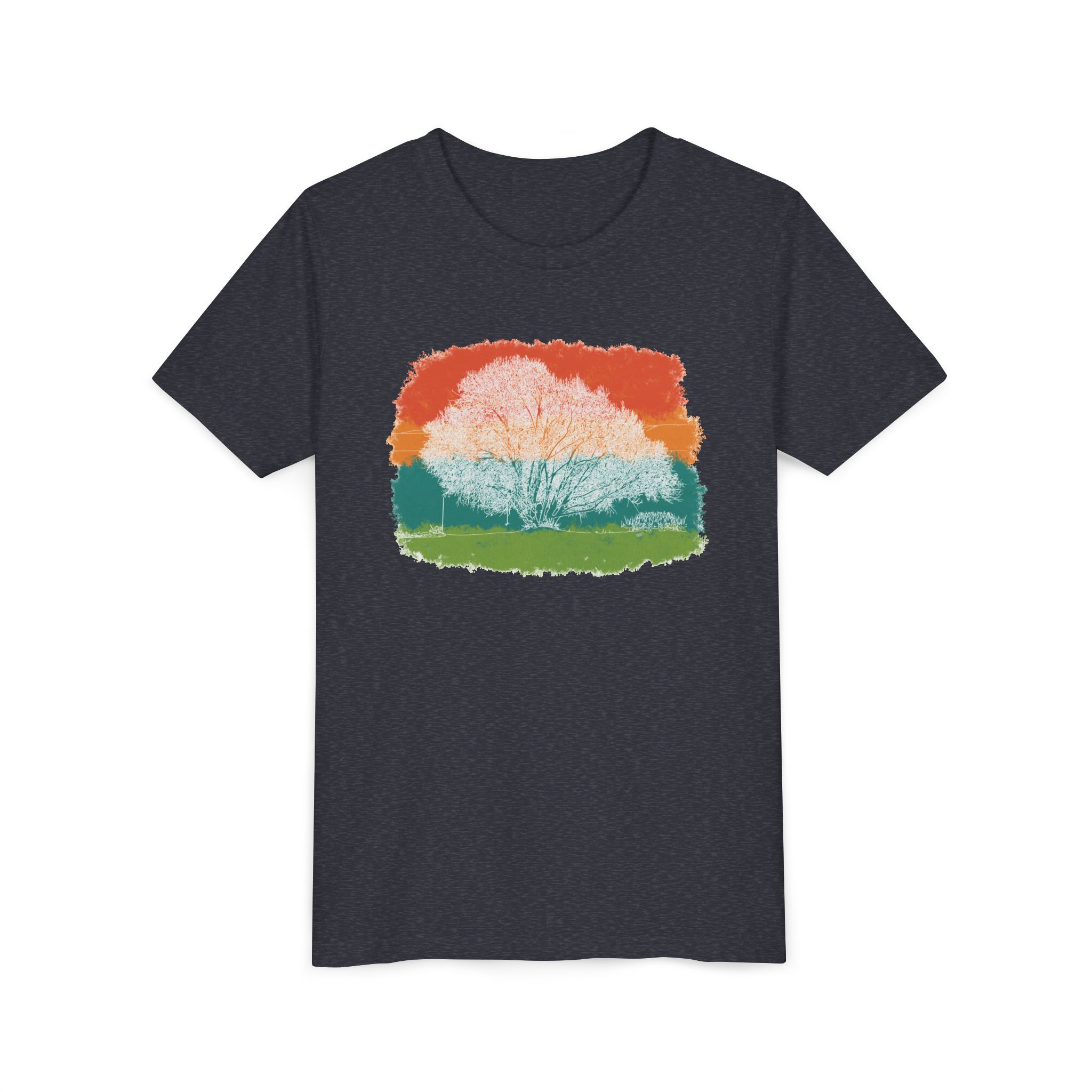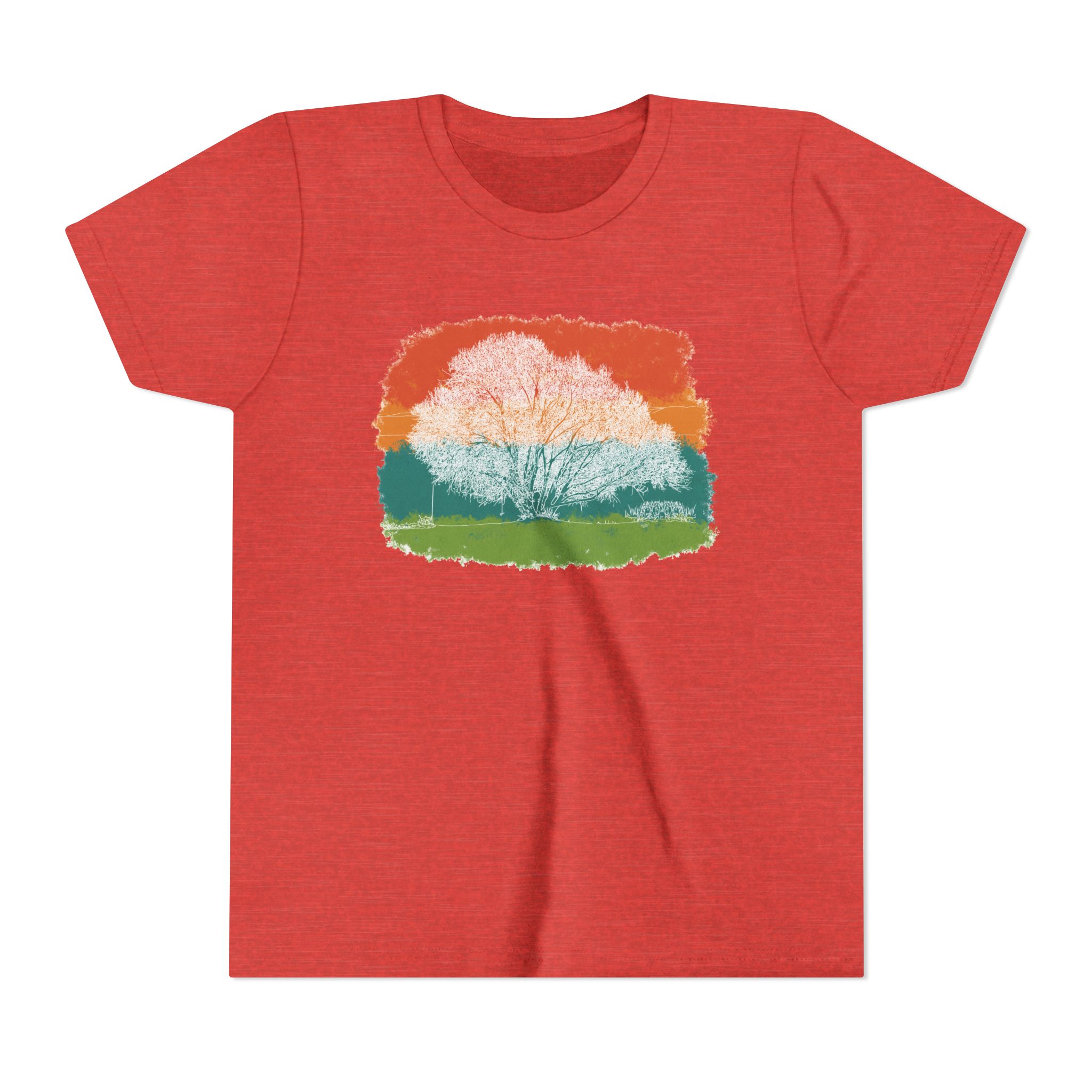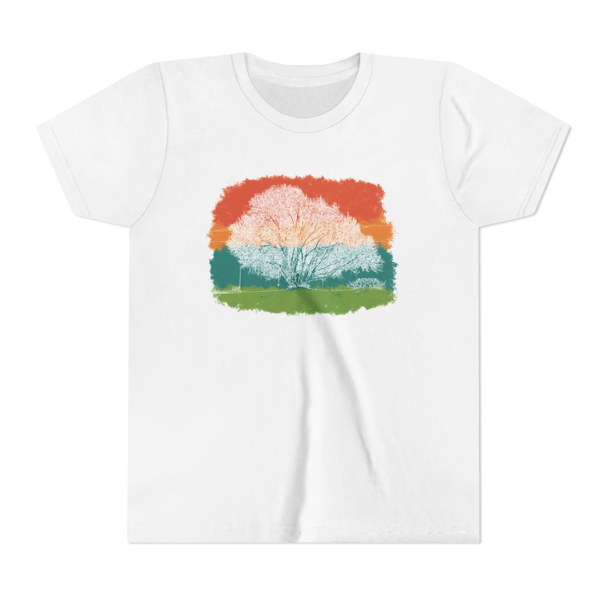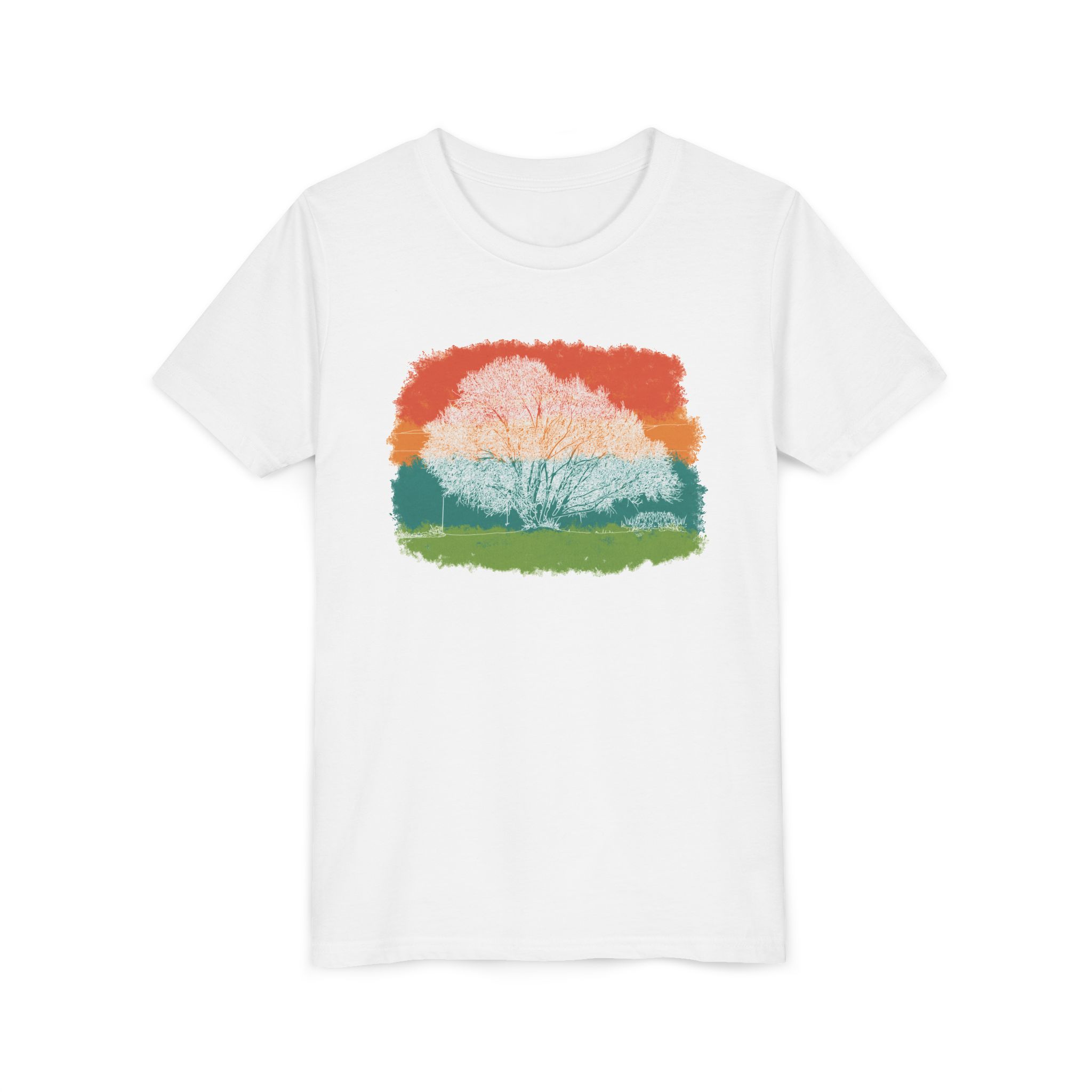 Meet me by the Retro Willow Tree. Enjoy the vibrant colors of nature with our colorful Retro Willow print drawn by Holly Papa on a unique t-shirt just for you. The original willow tree lived on Holly's Grandpa's farm in Idaho. Each line invites you to imagine the stories and memories shared beneath the tree’s graceful canopy.