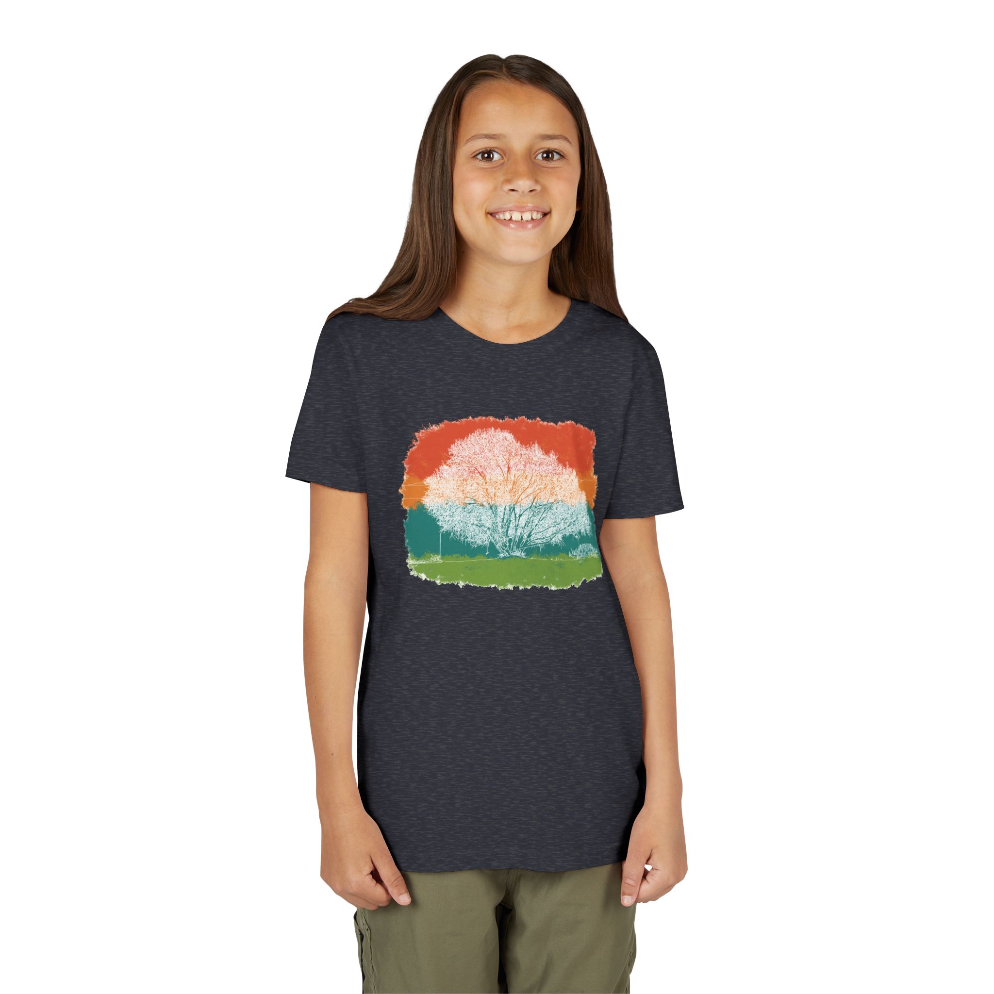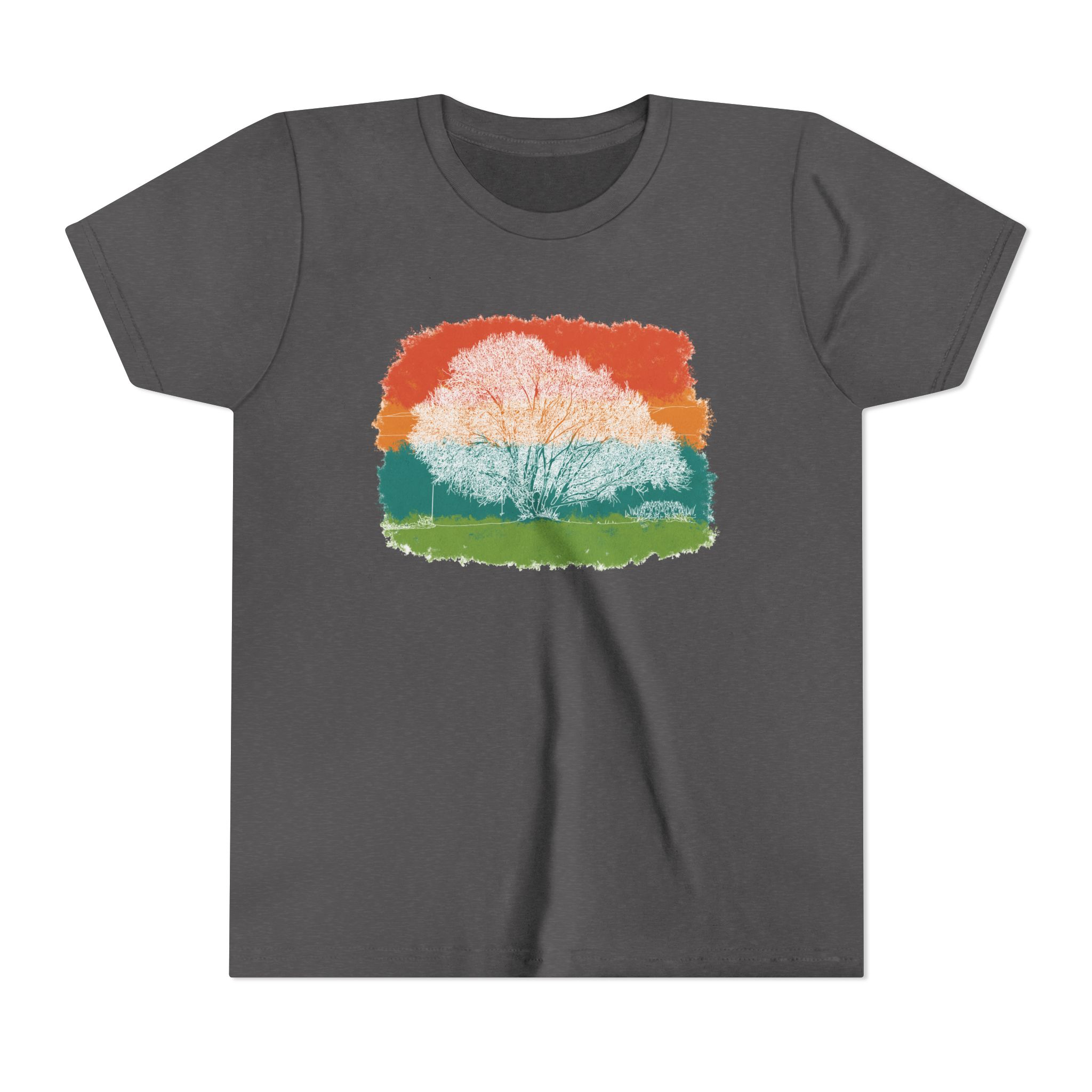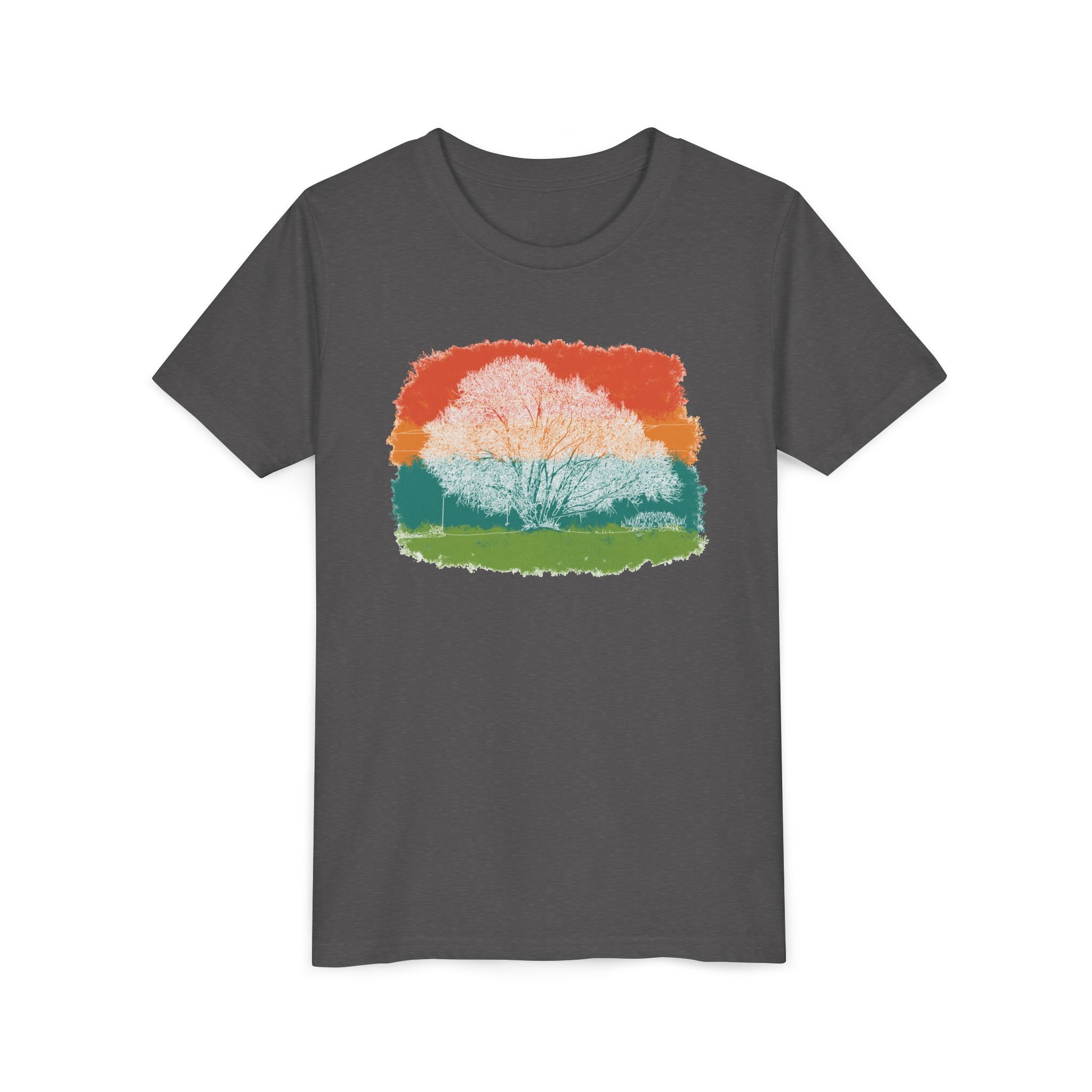 Meet me by the Retro Willow Tree. Enjoy the vibrant colors of nature with our colorful Retro Willow print drawn by Holly Papa on a unique t-shirt just for you. The original willow tree lived on Holly's Grandpa's farm in Idaho. Each line invites you to imagine the stories and memories shared beneath the tree’s graceful canopy.