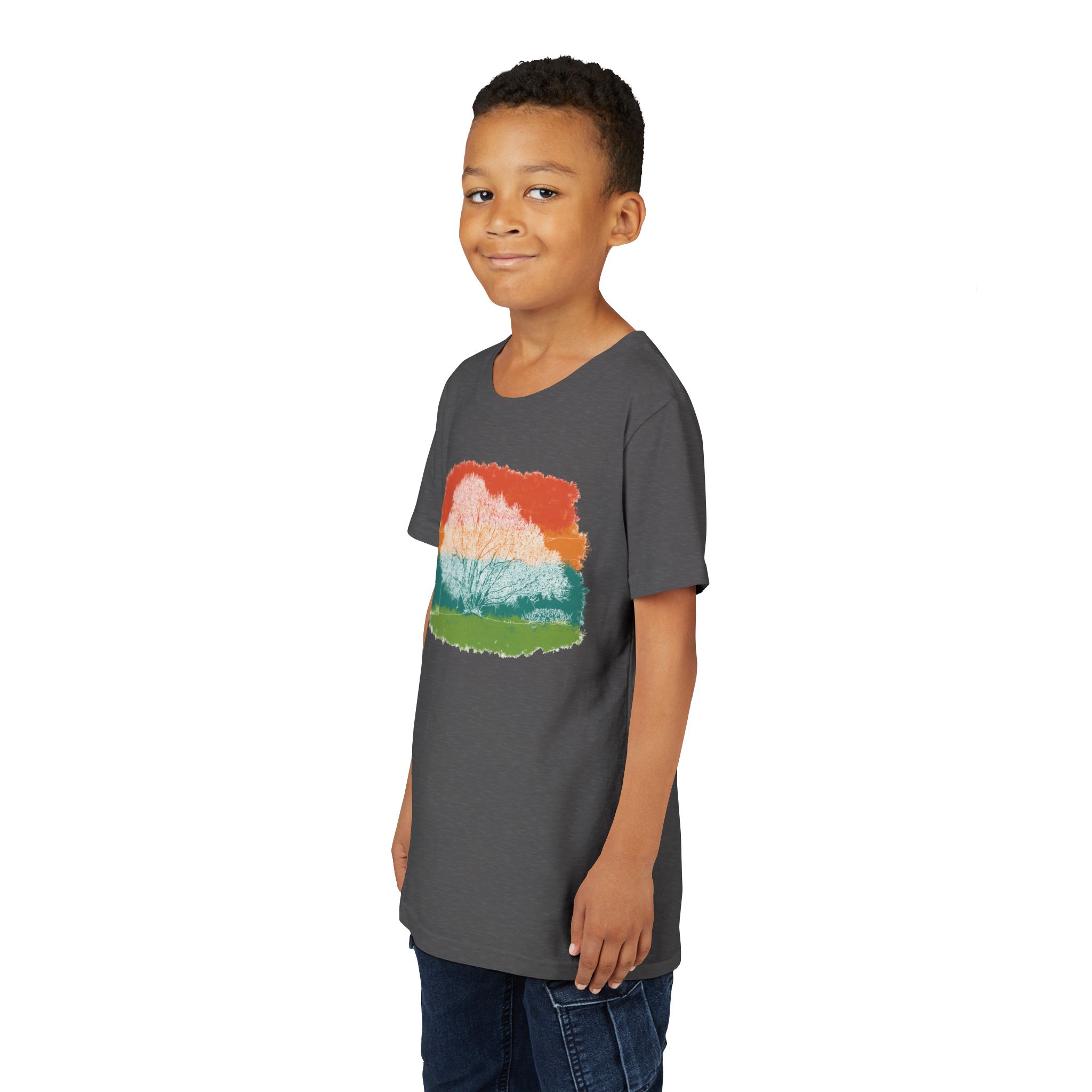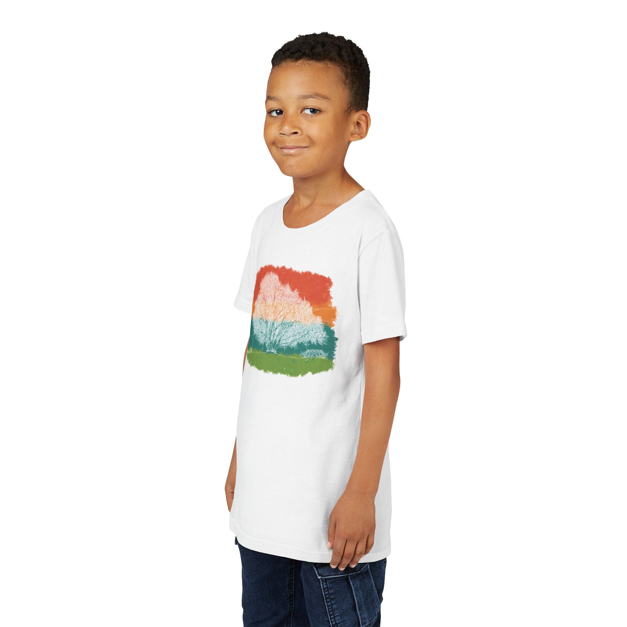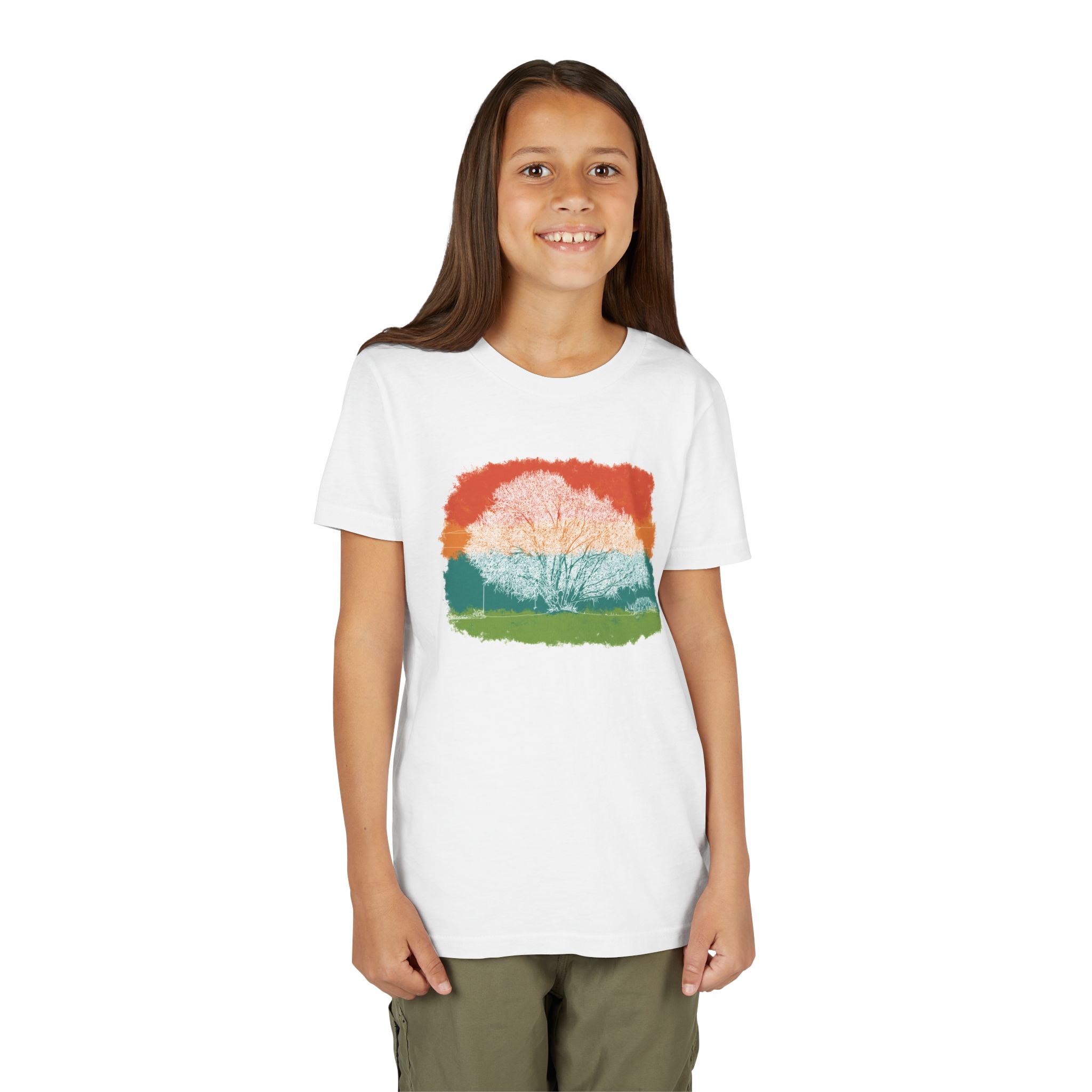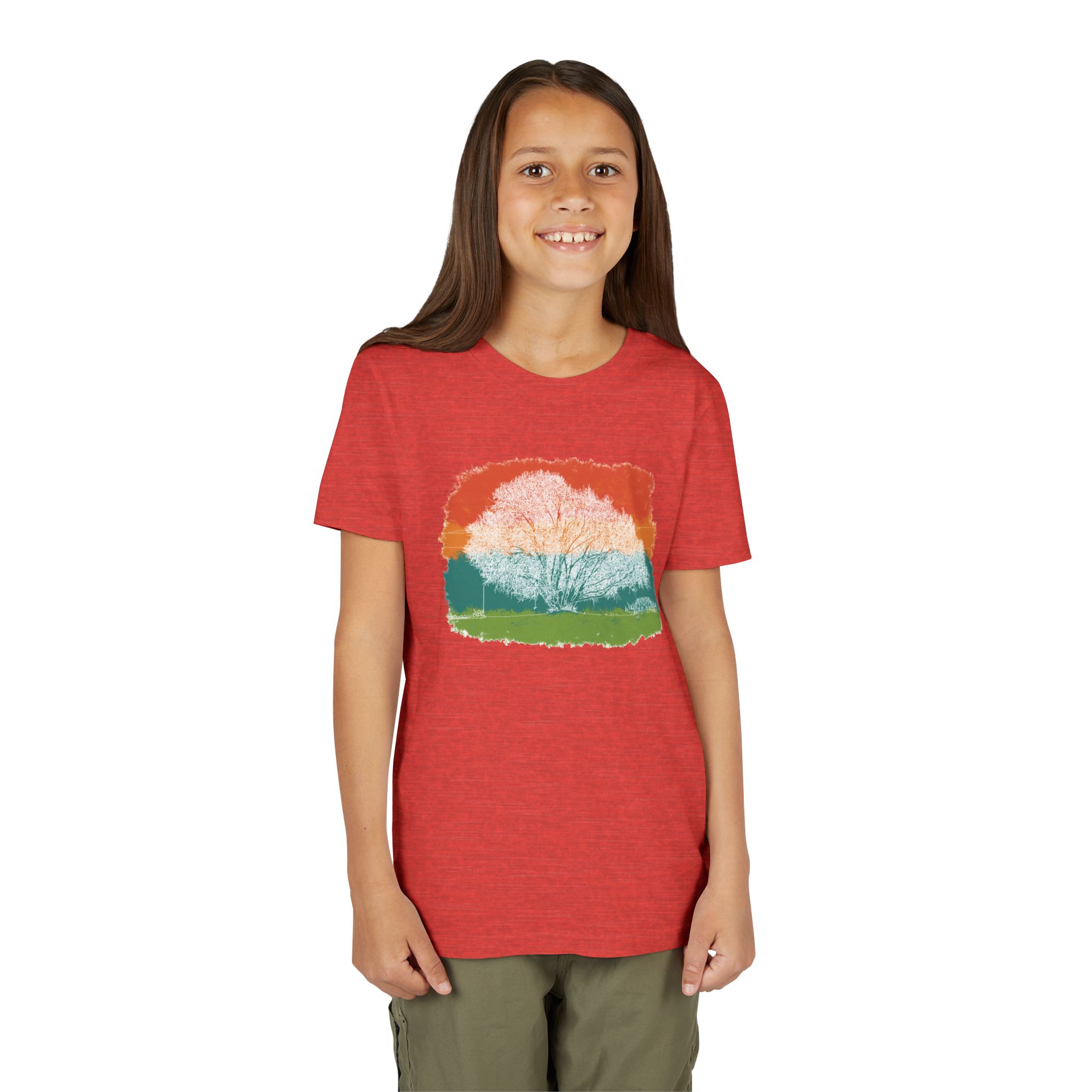 Meet me by the Retro Willow Tree. Enjoy the vibrant colors of nature with our colorful Retro Willow print drawn by Holly Papa on a unique t-shirt just for you. The original willow tree lived on Holly's Grandpa's farm in Idaho. Each line invites you to imagine the stories and memories shared beneath the tree’s graceful canopy.